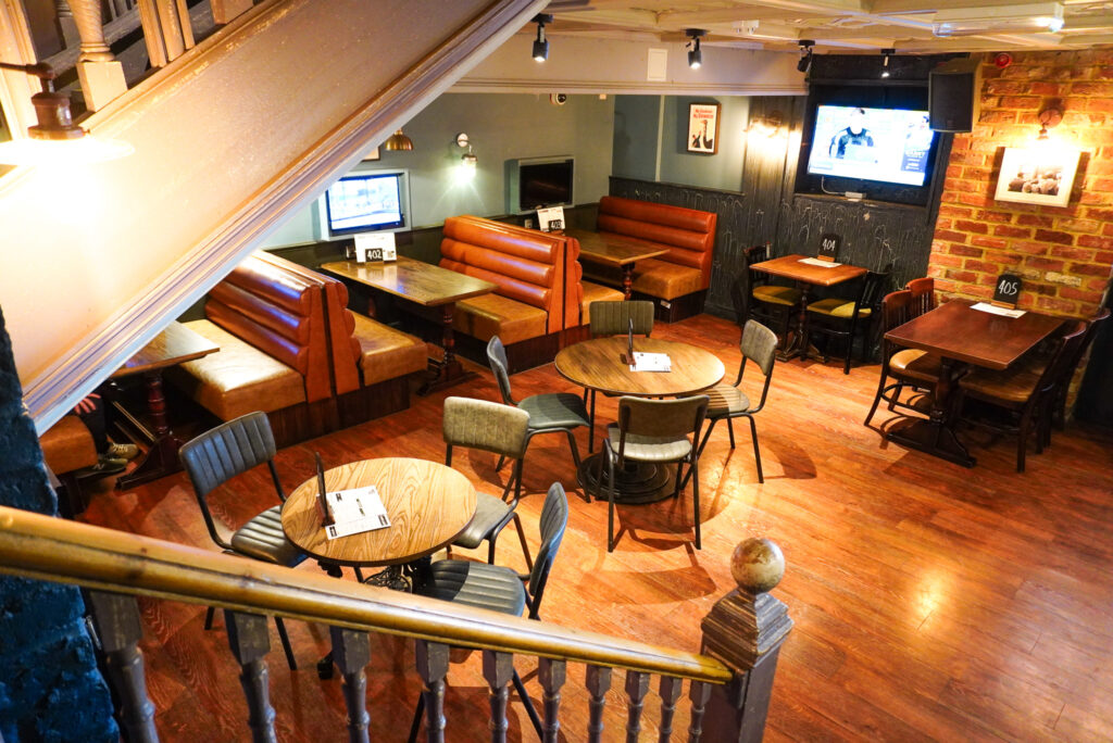 Tucked away just above the bar, the Loft is a welcoming space perfect for bringing people together. Accessible via a staircase from both the bar and the pool room, it offers a relaxed and slightly secluded setting that’s ideal for all kinds of celebrations.